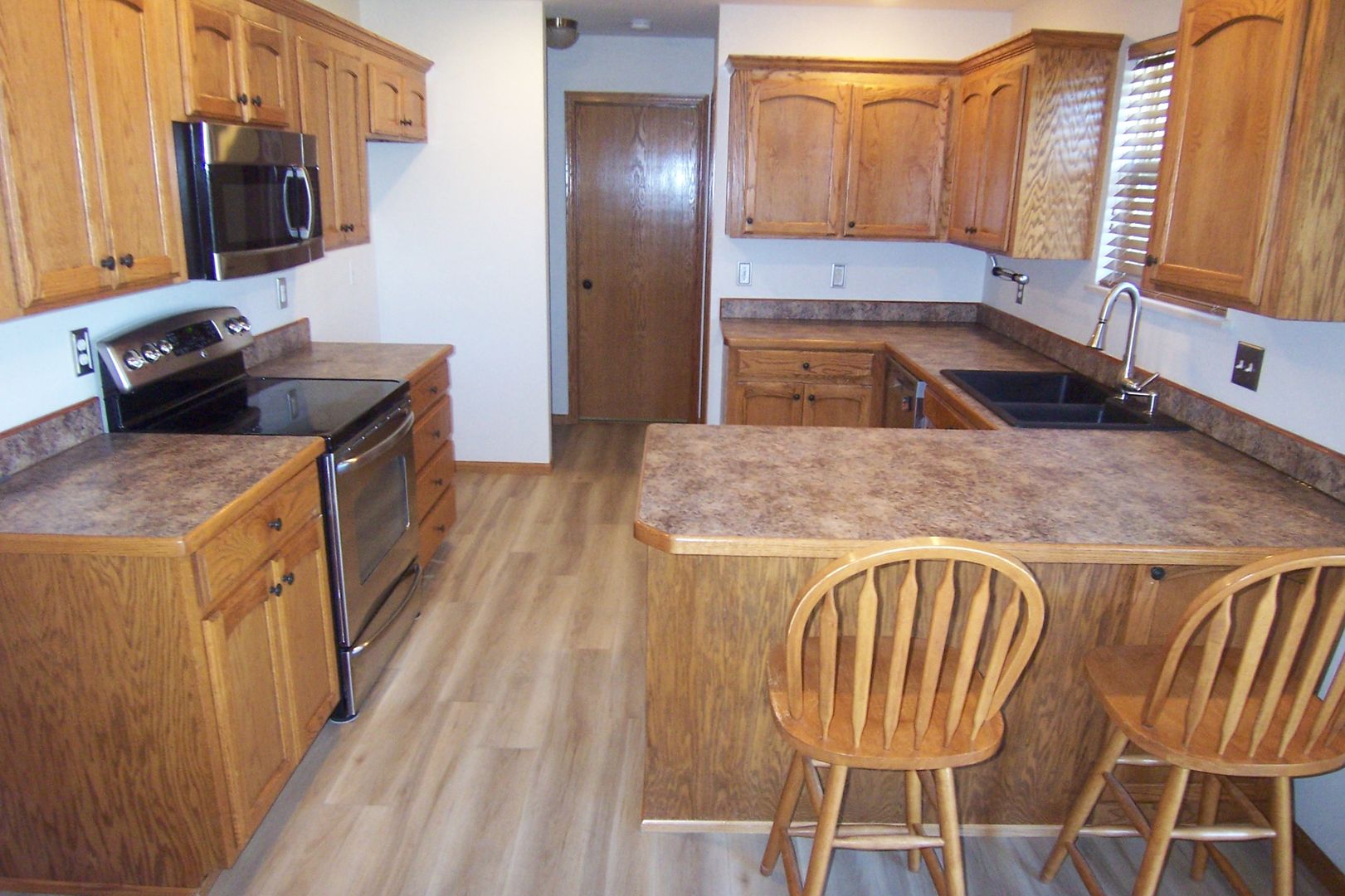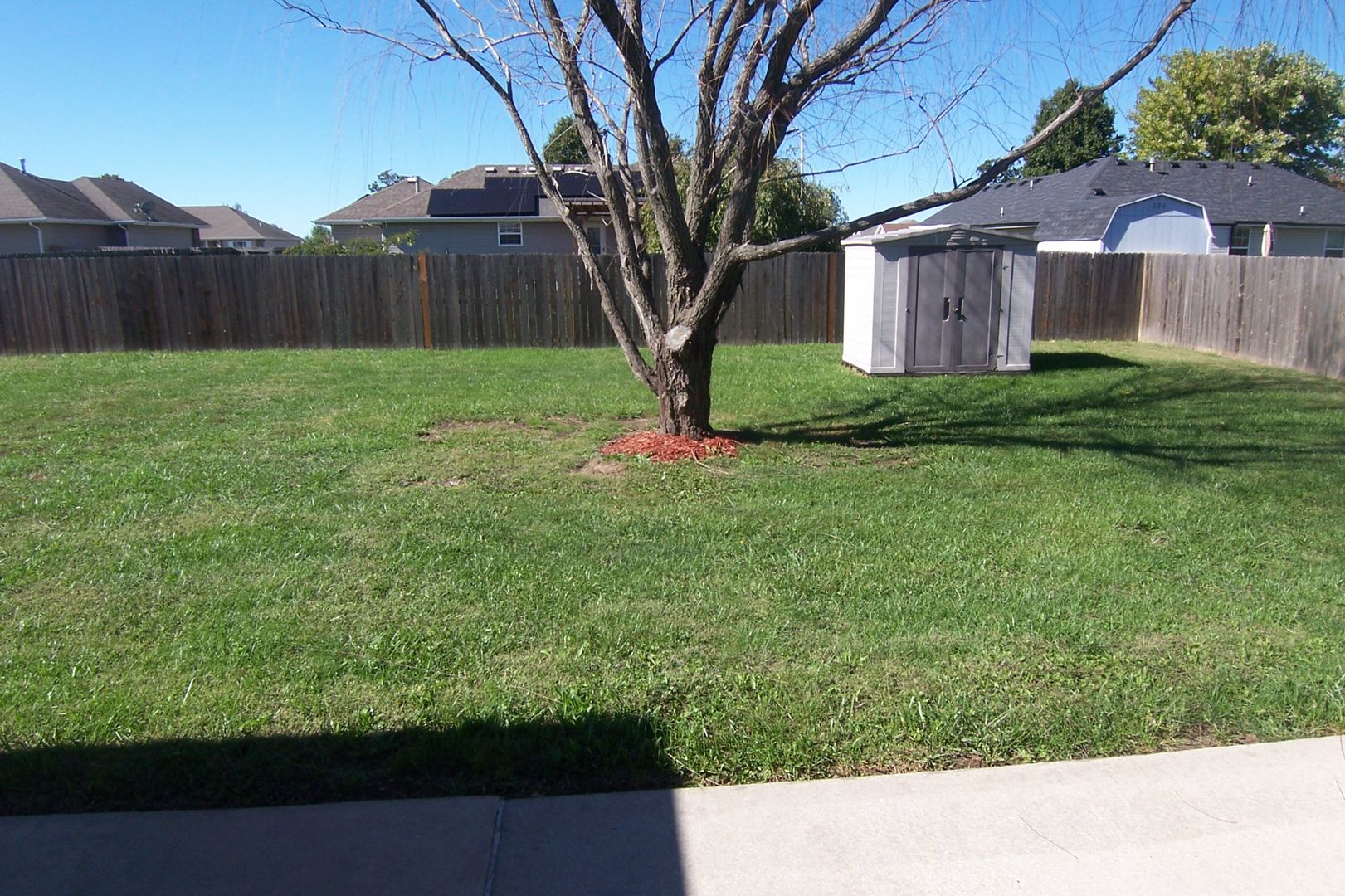 Welcome to this charming 3-bedroom, 2-bathroom home located in the delightful town of Clever, MO. This property boasts a split bedroom floorplan, providing ample space and privacy. The living area features a vaulted ceiling and an electric fireplace, creating a warm and inviting atmosphere. The kitchen is equipped with modern amenities including a microwave, a flat top electric range, and a stainless dishwasher. The home also features ceramic tile floors in the bathrooms and laundry area, and durable vinyl plank flooring throughout. Step outside to a private, fenced backyard complete with a concrete patio and a storage shed, perfect for outdoor entertaining and storage needs. Plus, lawn and landscaping care is provided, allowing you more time to enjoy the comforts of your new home. This property offers a blend of comfort, convenience, and modern living.